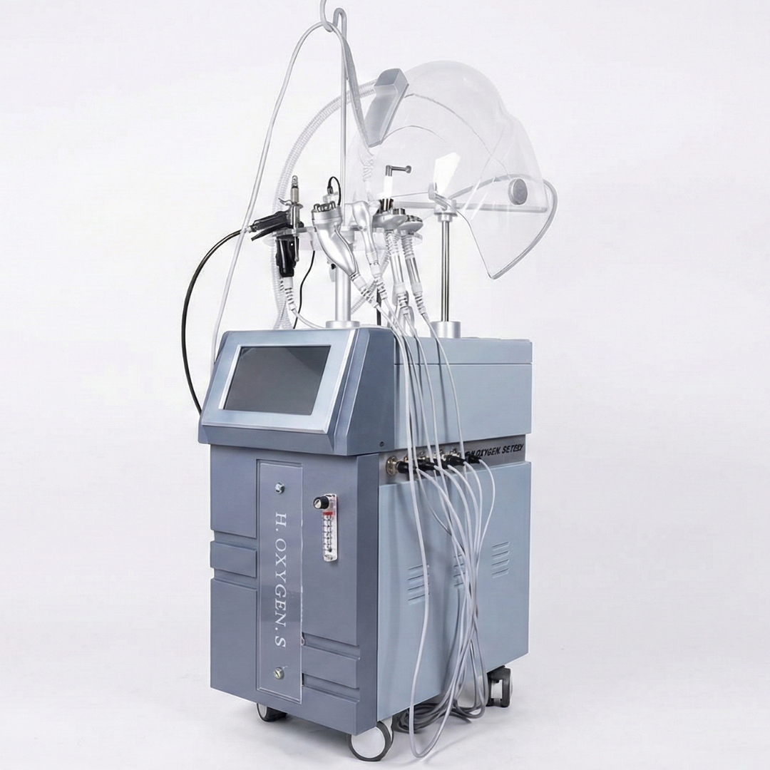 تقنية متقدمة للعناية بالبشرة تعتمد على الأكسجين عالي الضغط مع دمج أحدث التقنيات الكهربائية والضوئية لتنشيط خلايا الجلد من العمق، تجديد البشرة، وتحفيز الكولاجين بشكل فعال وآمن.
