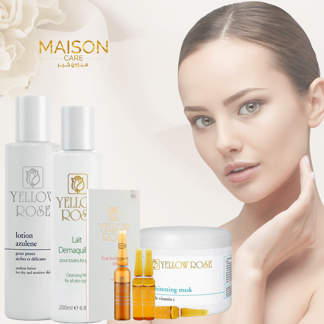 إذا كنتِ تبحثي عن جلسة علاج ممتازة لتبييض وتفتيح لون البشرة، فإنكِ لن تجد أفضل من جلسات ميزون كير المميزة بـ منتجات شركة Yellow Rose. احجزي موعدك الآن واستمتعي ببشرة أكثر إشراقًا وجمالًا.